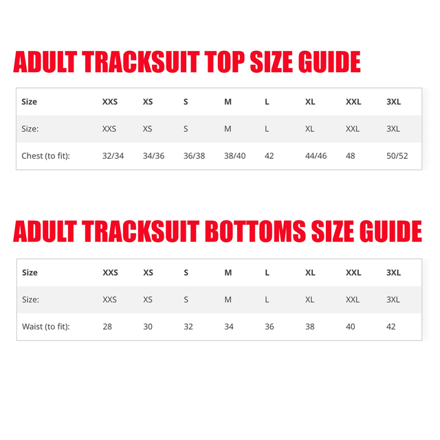 Stage Skool Tracksuits - If you require a different size of tracksuits bottoms from top please contact stephen@stage-skool.co.uk. After purchase we will contact you to confirm your sizes.